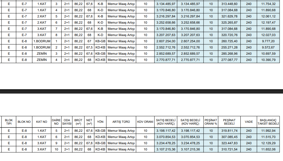 Taksit Başlangıcı: Konut teslimlerini takip eden ay itibarıyla başlar.